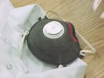 The disposable respirator we use is the 3M 8576, see pic below. This looks much like a dust respirator but is charcoal lined and has a one way valve on the front.