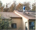 We get a lot of white tile roof cleaning in Tampa especially close to the beaches. If the wind is not blowing your mix over to the neighbors yard the tiles are so dirty you usually have to hit them many times. Plants are my main concern with white tiles, I almost wanted to pressure wash this roof.