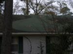 Here is my guess... That roof had a very thick mat of pine straw/debris on it which was recently removed. The GM did not grow under the pine straw. I have seen this on a few rehab properties I have cleaned in the past with neglected roofs. That roof is pretty low pitched and the pine straw would just sit up there if not cleaned off regularly. Sometimes you'll notice this to a lesser concept on roof valleys that are packed with leaves, the singles are clean under the debris.