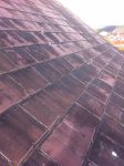you probably will remember these photos from a few days ago. I washed a black synthetic slate roof yesterday and uses a mix based on the apple mix but the results were poor. I expected the black fungus to disolve but was disapointed with the results. To be honest I didn't add enough tsp or borax to the mix but would that much of a difference. I was able to remove a lot of the fungus by using the pressure washer lightly. One thing I noticed was white spots where I cleaned. This was a result of the surface coating coming off the slate. I checked the roof of an adjoining garage which we had not sprayed and saw the white spots there only less noticeable because of the fungus. I think it is caused by acid rain or else the fungus, what do you think?