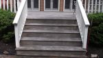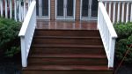 We prepared this deck by two stepping for a coat of stain and seal. We only used 200 psi to clean this deck. There was no furring or splintering of the wood. Also we did not use a bleach product on this deck.