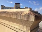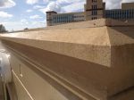 Everything cleaned up with softwashing. No pressure was used all day. Building is poured concrete (painted) and the accents about windows and cornice boad are Dryvit Stucco. Shot the stucco at about 18%, then thinned mix down for spray the balance of the building.