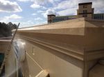 Everything cleaned up with softwashing. No pressure was used all day. Building is poured concrete (painted) and the accents about windows and cornice boad are Dryvit Stucco. Shot the stucco at about 18%, then thinned mix down for spray the balance of the building.