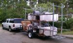 The part of the system that is hanging off is the light end. The heavy ends with plumbing, hoses, pumps and reels are all situated directly over the axel. It is a 3,500 pount axel. It ran down the road like butter!
