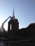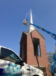 Mount Zion AME Church is having Spray Wash clean their steeple to make it look perfect for Easter! 70 foot height, using a 1.5% mixture and lots of greenwash for cling!
