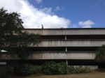Spray Wash cleaned the exterior of this parking deck on June 1. The exterior is an exposed aggregate limestone, which makes it very difficult to clean ( and nearly impossible to pressure wash!) Due to the aggregate, each square inch of surface has about 15 different "faces" and angles to hit. We cleaned the exterior with a 2% mixture, rinsed, reapplied, and then rinsed again. Later this week we will be attacking the graffiti with "Worlds Best Graffiti Remover".