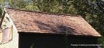 I did a garage today that had cedar shake, turned out pretty good. I use a 1.5% mix - dwell 10 minutes then rinse like crazy. I do pre-wet the cedar before applying the mix. I did each side of this garage in 4 sections.