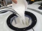 One cool thing I noticed is that CH's inert ingredients would settle into the bottom of the tank very nicely after about 15 minutes of not agitating the tank (see pic). On this job I kept it all suspended in the tank during spraying, but very soon I plan on dedicating a small pump and line plumbed into the bottom of the tank to separately pull this stuff out after settling - in theory eliminating any residue concerns all together.