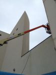 Additionally, when I arrive yesterday on the job-site, I found a huge construction dumpster had been placed right where I needed to be. That killed the viability of bringing in a move maneuverable 85' lift. Rather than reschedule, we decided to change our plan of attack. Rather than attacking this job from the "bottom up" we decided to go from the "top down". I picked up a small 35 footer from Home depot, which was small enough to maneuver through the parking garage to the top of parking garage and about the midway point of the building. Between fire escapes and this smaller lift, we were able to access everything we needed to and still get the job completed at as scheduled.
