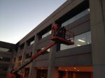 In the week of December 16-22, Spray Wash is cleaning the NHMFL of Florida State University. Its a very large, very cool facility and one of one two in the nation ( the other in is New Mexico)! Scientist from all over the world come here to do magnetic field experiments. We had a very public loading area on the schedule today. Folks come to this area to fill their tanks with liquid nitrogen, so we decided it would be best to clean this area in the dawn hours, before the staff came. We were on the lift before dawn and plugging away.