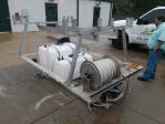 Took this in on trade this week. It is a WELL USED SWS Cradle Skid that was purchased at Softwashapolooza 2012. It has a new penteflex bleach pump on it and a new injection pump. The owner added a welded on flat surface cleaner rack and made a few other additions. I will let this go as is. If I have to clean it up and putative into updating it I will have to sell it for $3,900.00. Take it as is and I will let it go for $2,500.00.
