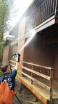 Here is a project we just tackled this past week. 114 Decks on an apartment complex (57 lowers, 57 second story) with black iron railing and dark brown painted siding. We also threw in the cleaning of their front "sign" which consisted of mildew covered brown painted siding.