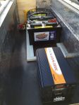 1) I cut two pieces of 3/4" plywood and attached them to the toolbox to mount the systems to. One for the battery back and AC inverter, one for the Stealth DC charger which needs to be mounted on a vertical surface for venting/cooling.