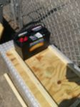 4) Inspired by the pictures AC put up of that other battery bank install I made a wood strip retaining ring around the batteries to keep them from shifting around. I only have 3 batteries at this point but I made space for 4 so I can add another soon.