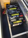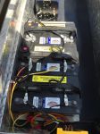 7) As I made all my connections with the cables and the battery bank, I tried to distribute my connections across the battery bank to avoid focusing on drawing from just one battery which could cause excessive heat build up. As you can see in the pictures, I connected the Stealth DC charger to the middle battery, the pump system to the first battery, and the AC inverter to the last battery. There may be an even better way to do this, but that's how I have it for now.