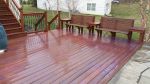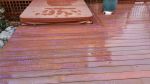 Attached are some pics of Wood Restore in action. We did this Mahogany deck a few weeks ago and the owners were very concerned about the bleaching out of the original stain. It was a cold an drizzly day, but it worked great. We softwashed the deck with a 1.5% mix, rinsed and brushed. The I applied the Wood Restore with a pump sprayer with a foaming fan tip, and then brushed the puddling areas out. It foams up instantly and you can see the neutralizing effects. You can also see the purple tint, which is the UV inhibitor, and also makes it easier to see what you are doing. I wish I had more pics, but we were fighting the rain and I only took a few. As you can see the wood was returned to it's original color and the owners were very impressed...they thought that a new coat of stain was needed, but after the cleaning they did not need it.