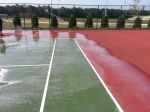I had a client ask today If I could Softwash their tennis court. The low spots in the court have gotten mildew and mold where the water sits. The court is surrounded by plants and flowers. Can I hit it with a 2% SH solution and push it around with a broom just like if you were doing a flat roof then hose it off? And if so then hit the plants and flowers real well with plant wash? Any thoughts or knowledge on this would be helpful. Thank You