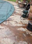 Its not salt or chlorine water. She mentioned what it was but just i cant think of it but its pure water basically. It used to be stained concrete and then they put sealer on it. Maybe that could be part of it. And it looks kind of like a thicker old sealer on it. She didn't want me to use much pressure at all to clean it! She basically just wanted water hose pressure to clean it. She Thought I would chip the concrete. And that could be it. If its never had a really good pressure washing to get the seal off, they could just keep sealing over old seal but they're having a wedding in a few weeks there so they just wanted a quick fix so I sealed it and it looks good for now but they said eventually it will turn white again and they've been dealing with for too many years so after the wedding their going to redo the whole pool area. Which is fine with me I can move on to the next project. Thanks for every ones help!