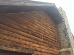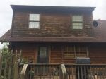 Here are the before and after pictures of the log cabin project. We struggled with rural water supply - both volume and pressure. Not enough pressure for the garden hose nozzle to reach upper levels and not enough of either to use the pressure washer to rinse. The pressure washer kept running away from water. Finally got it rinsed though and applied Wood Restore (and of course rinsed off the window glass after applying Wood Restore).